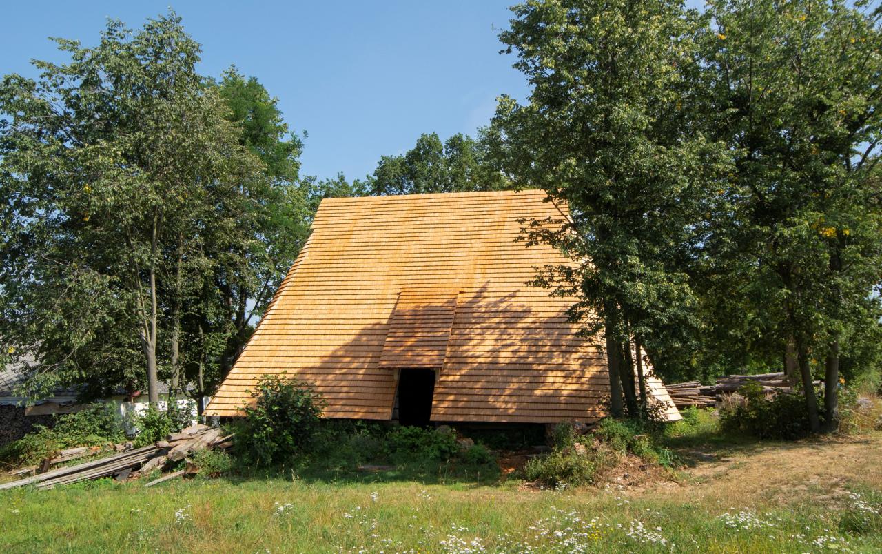 Obráceně. Této stavbě jsme se věnovali, protože tu už podobná stavba byla. Byl to pro nás impuls, že i z téměř nemožného se dá vykřesat velká věc. U transferované stodoly z vedlejší obce Čistá sem k nám k Mikšíkovu statku šlo o ještě větší počin. Polygonální stodoly nebyly dříve v zemědělských vesnicích, jako je ta naše, ničím výjimečným. V sousední Čisté jich stálo 60, u nás 40. Bohužel se dochovaly pouze dvě.