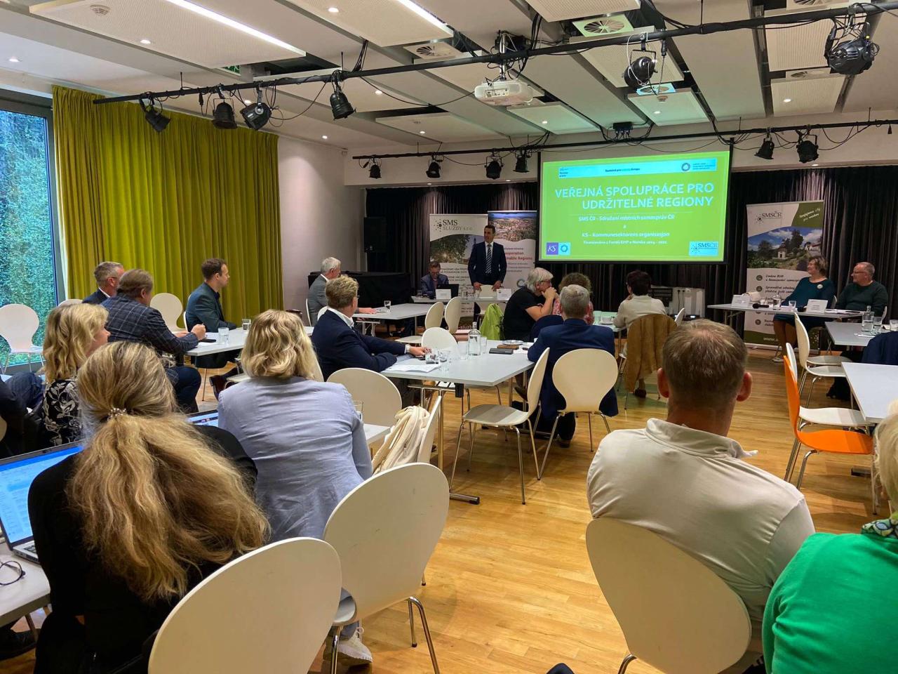 Jednání zahájil Filip Kořínek, starosta členského města Černošice, který představil město, jeho rodáky a zajímavosti. Kulatým stolem provedl účastníky místopředseda SMS ČR Tomáš Chmela, který přítomné seznámil se zkušenostmi z projektu financovaného z Norských fondů a moderoval diskuzi týkající se udržitelnosti krajiny a rozvoje obcí. Účastníci aktivně diskutovali k jednotlivým tématům. Jejich názory a podněty se promítnou do výstupů projektu.